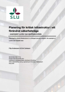 Andersson, Filip and Erik, Carlsson, 2025. Planering för kritisk infrastruktur i ett förändrat säkerhetsläge : exemplet Lunds nya sjukhusområde. Second cycle, A2E. Alnarp: SLU, Dept. of Landscape Architecture, Planning and Management (from 130101)