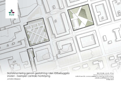 Eliasson, Jennifer, 2025. Skyfallshantering genom gestaltning i den tätbebyggda staden : exemplet centrala Norrköping. Second cycle, A2E. Alnarp: SLU, Dept. of Landscape Architecture, Planning and Management (from 130101)