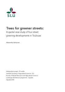 Kettunen, Alexandra, 2026. Trees for greener streets : a spatial case study of four street greening developments in Toulouse. Second cycle, A2E. Uppsala: SLU, Dept. of Urban and Rural Development