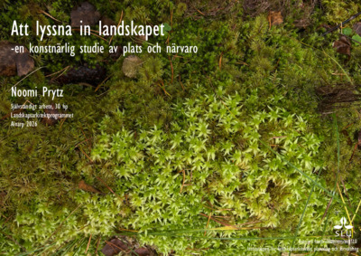 Prytz, Noomi, 2026. Att lyssna in landskapet : en konstnärlig studie av plats och närvaro. Second cycle, A2E. Alnarp: SLU, Dept. of Landscape Architecture, Planning and Management (from 130101)